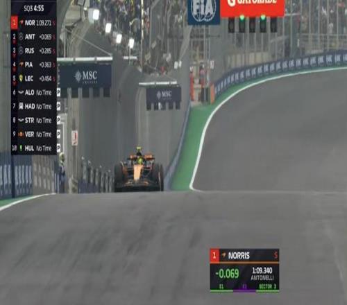 5位车手选择在P房里等最后一圈飞驰,目前出场的5位车手中诺里斯暂居榜首,身后的则是两台梅赛德斯;