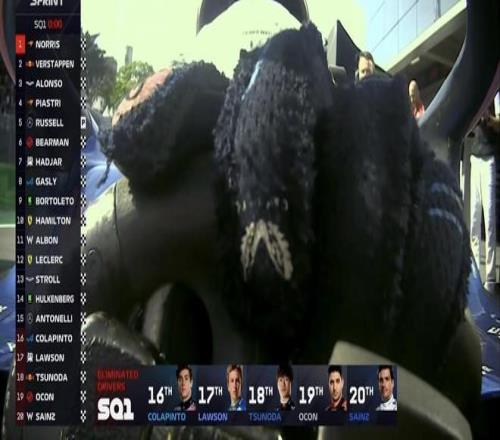 SQ1被淘汰车手:科拉平托、劳森、角田裕毅、奥康、塞恩斯