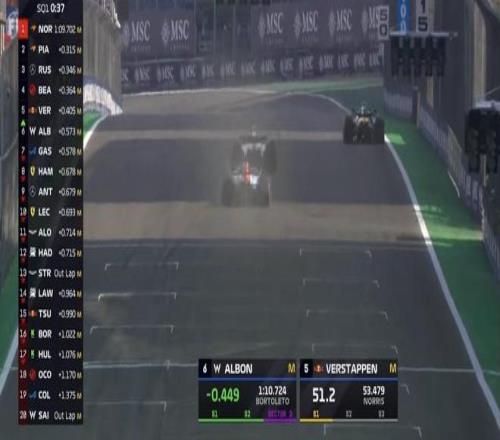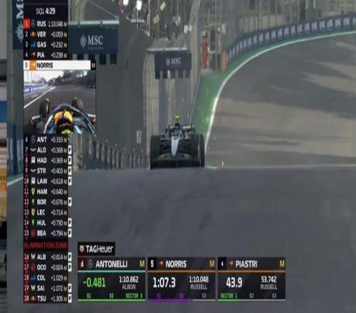 SQ1首轮飞驰圈结束,拉塞尔来到榜首,维斯塔潘&加斯利排在二三;