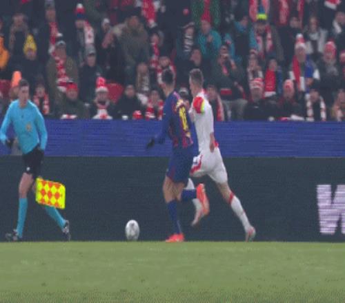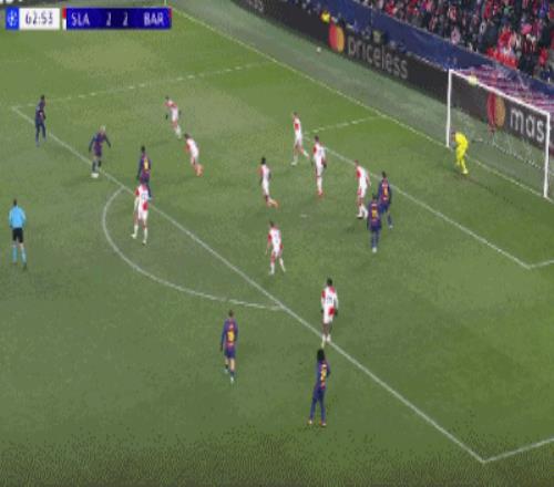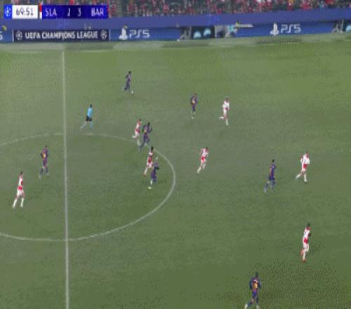 第64分钟,奥尔莫世界波远射破门,巴萨3-2布拉格斯拉维亚