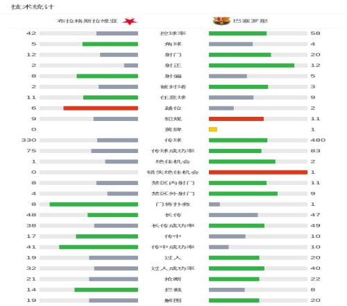 北京时间1月22日欧洲冠军联赛联赛阶段第7轮,布拉格斯拉维亚对阵巴塞罗那。上半场库谢伊幸运破门,费尔明梅开二度,莱万解围自摆乌龙,下半场奥尔莫世界波远射破门,莱万禁区钩射锁定胜局。最终比分布拉格斯拉维亚 2-4 巴萨。