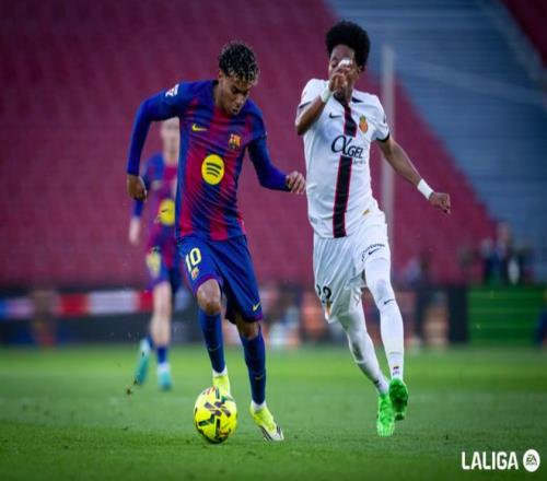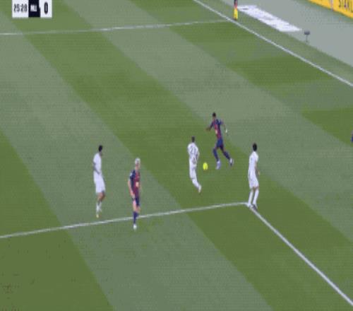 第25分钟,巴萨打出快速反击,莱万分球后全速向前,亚马尔的传球差一点就打穿马洛卡的防线,相当懊恼。